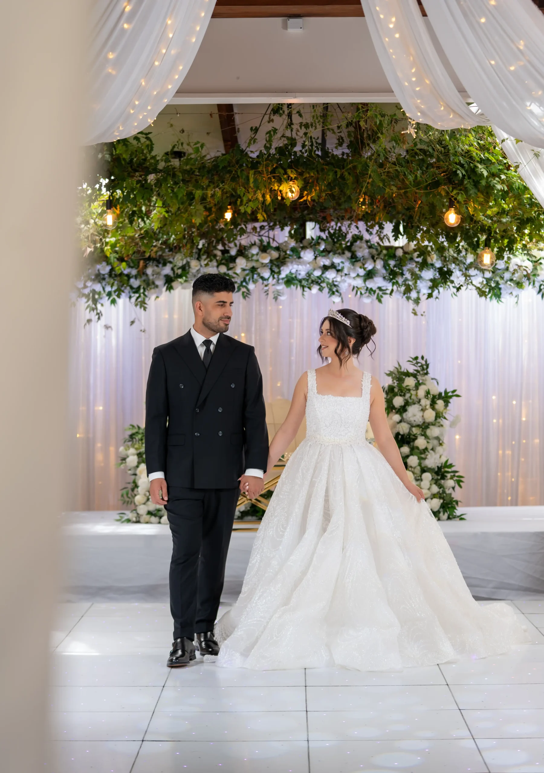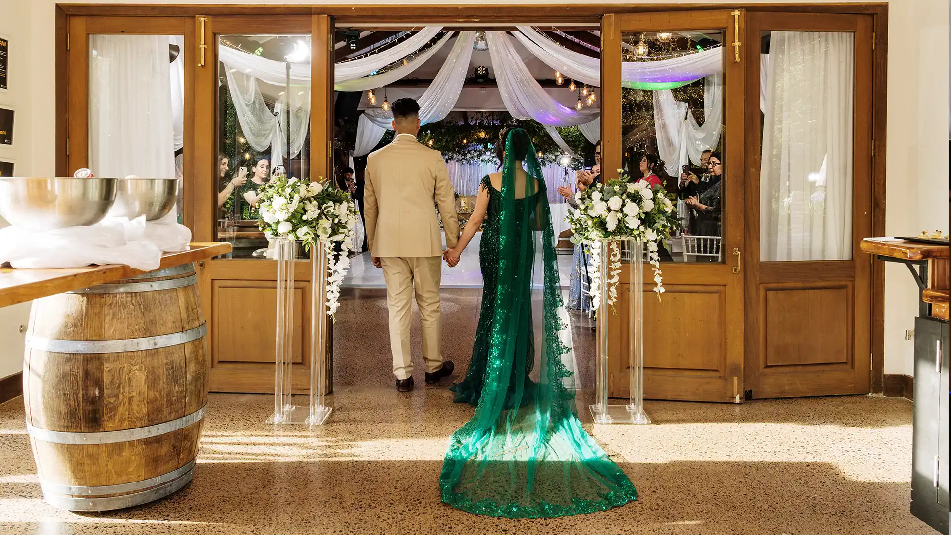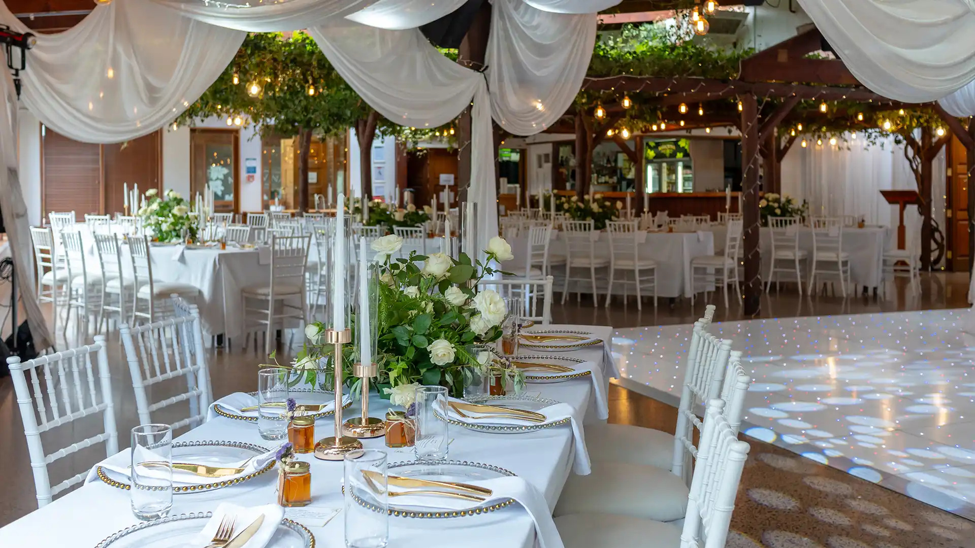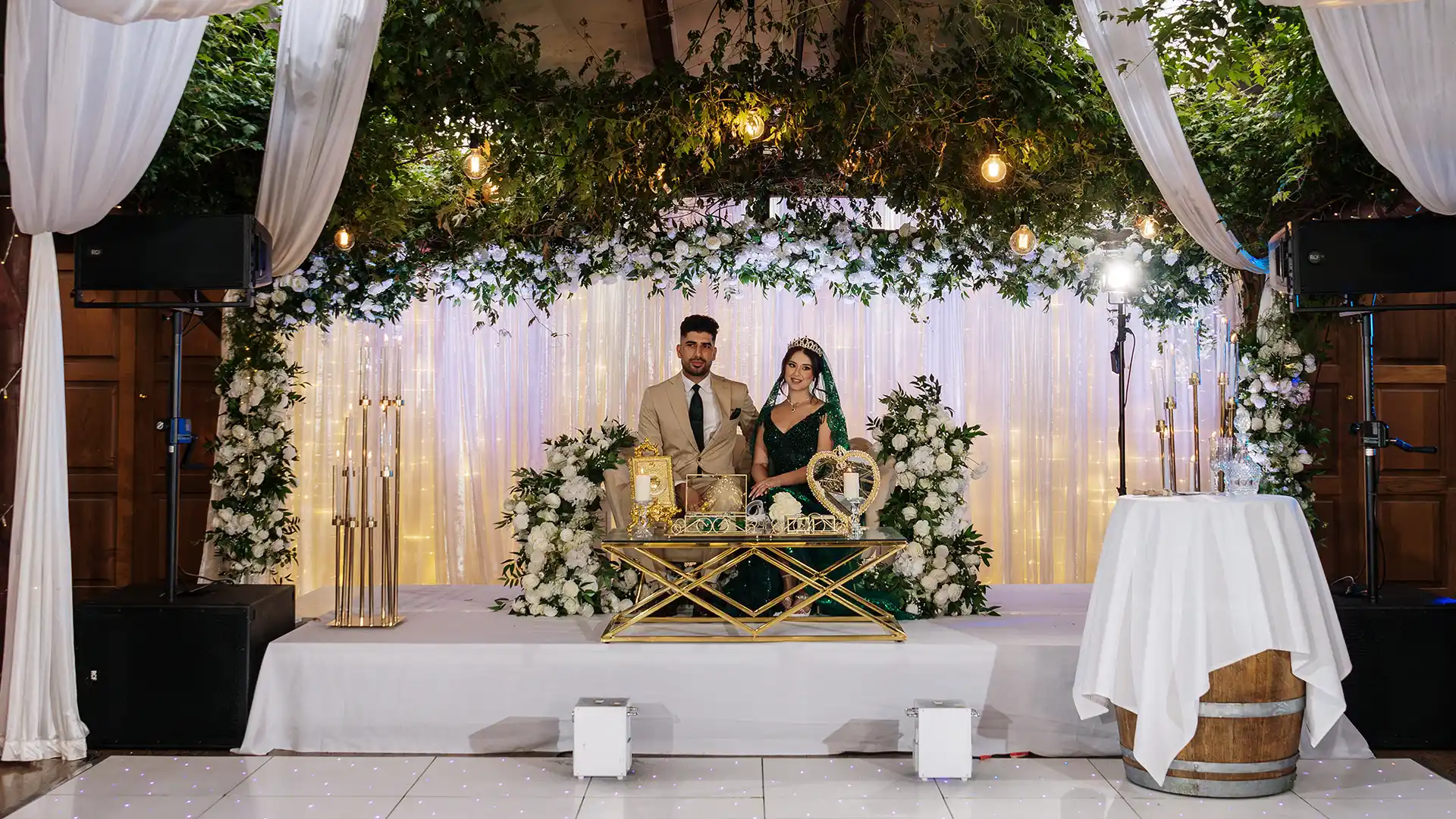 The reception room’s alfresco design allows you and your guests to dine beneath a magical canopy of vines, vintage lights, and fairy lights, creating a romantic atmosphere. Whether you’re hosting an intimate gathering or a grand celebration, we can tailor the space to your needs, ensuring your day is as unique as your love story.