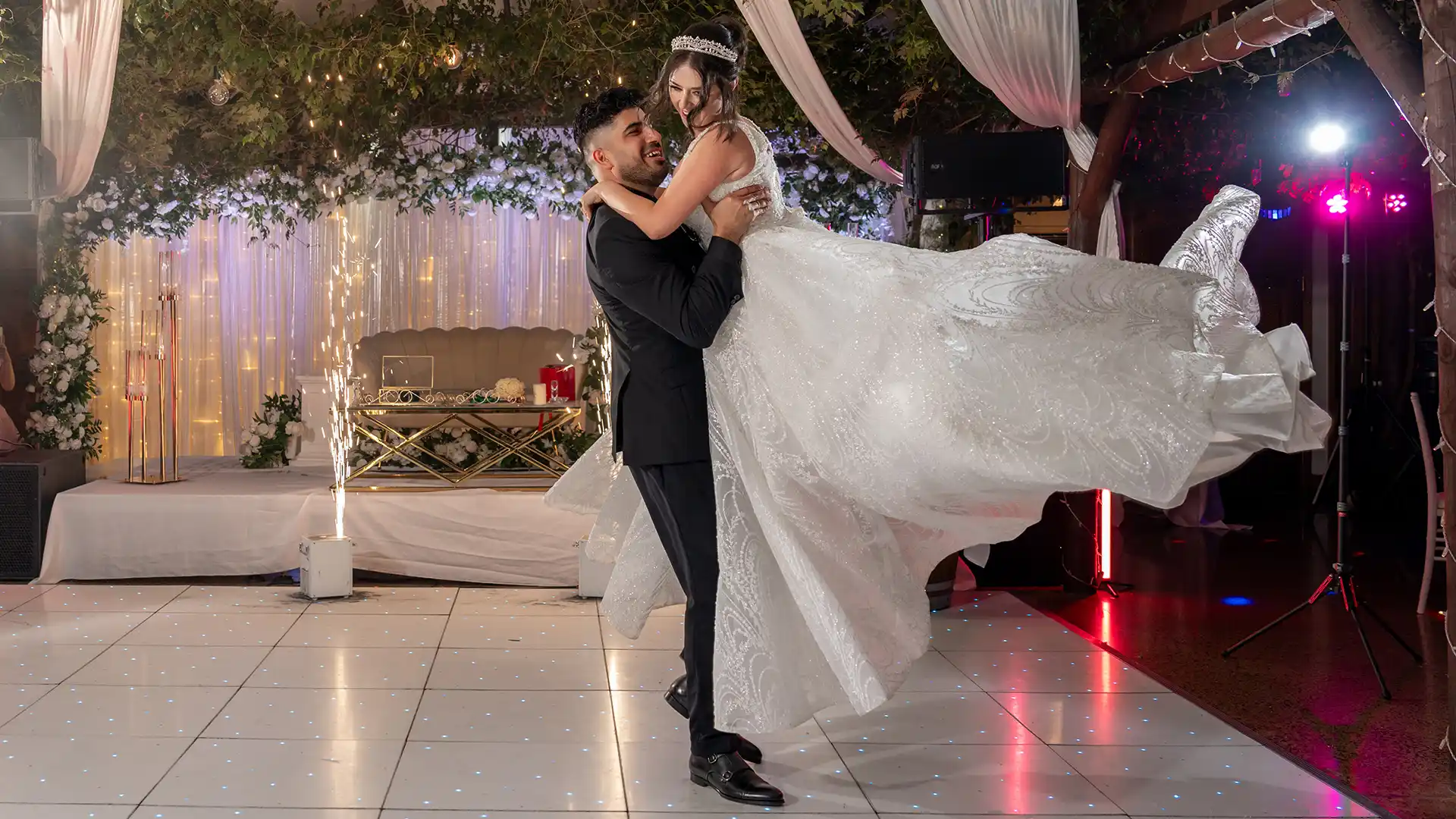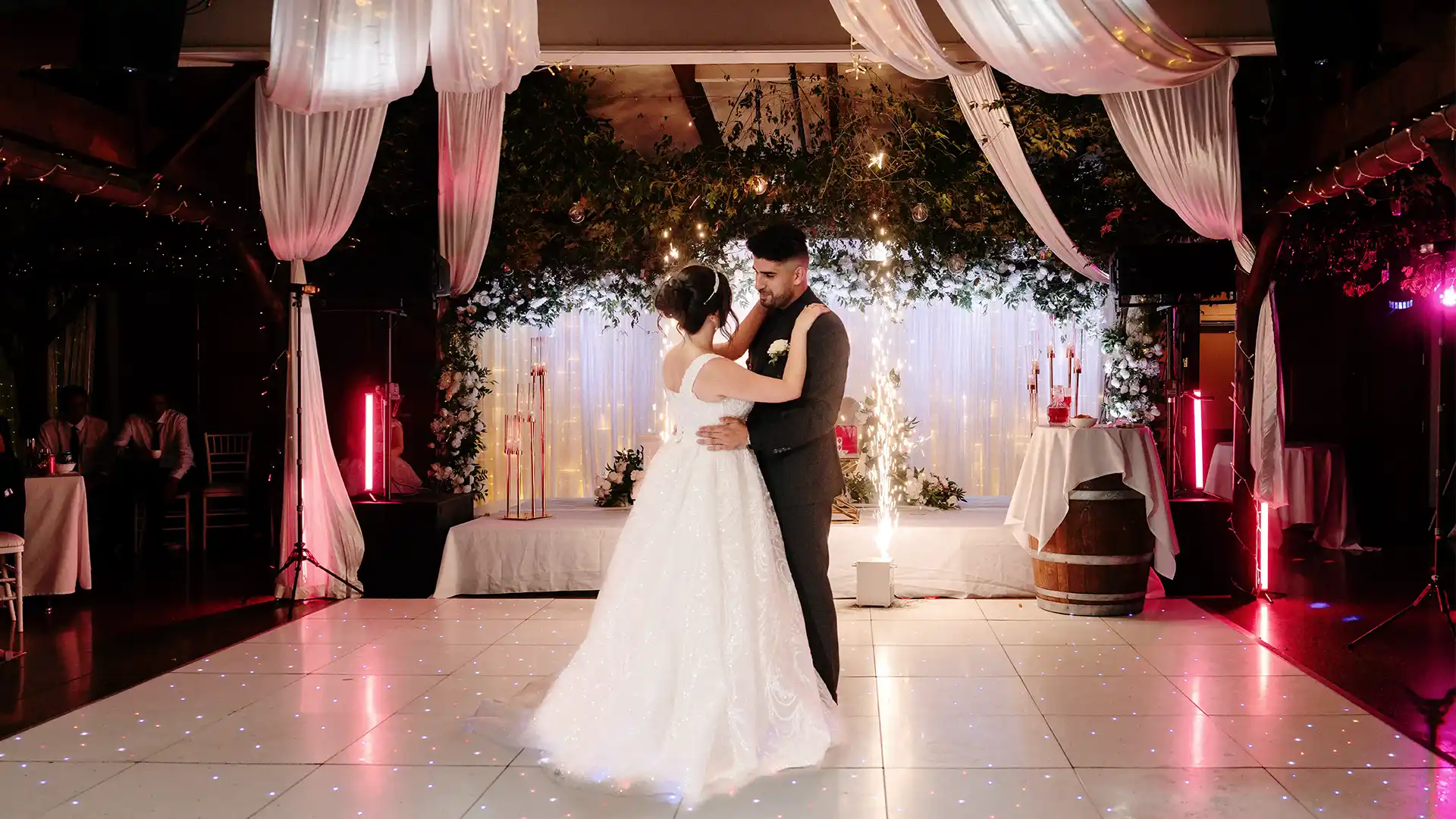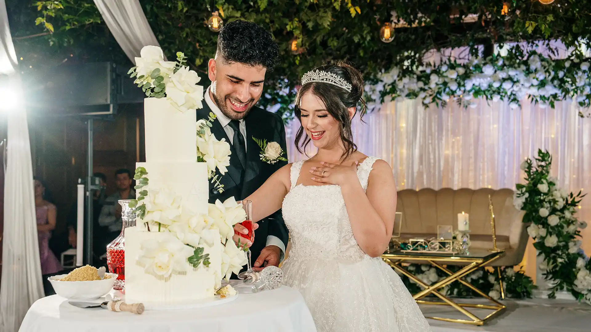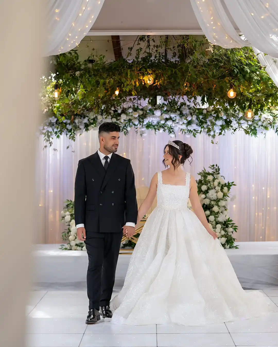 The reception room’s alfresco design allows you and your guests to dine beneath a magical canopy of vines, vintage lights, and fairy lights, creating a romantic atmosphere. Whether you’re hosting an intimate gathering or a grand celebration, we can tailor the space to your needs, ensuring your day is as unique as your love story.